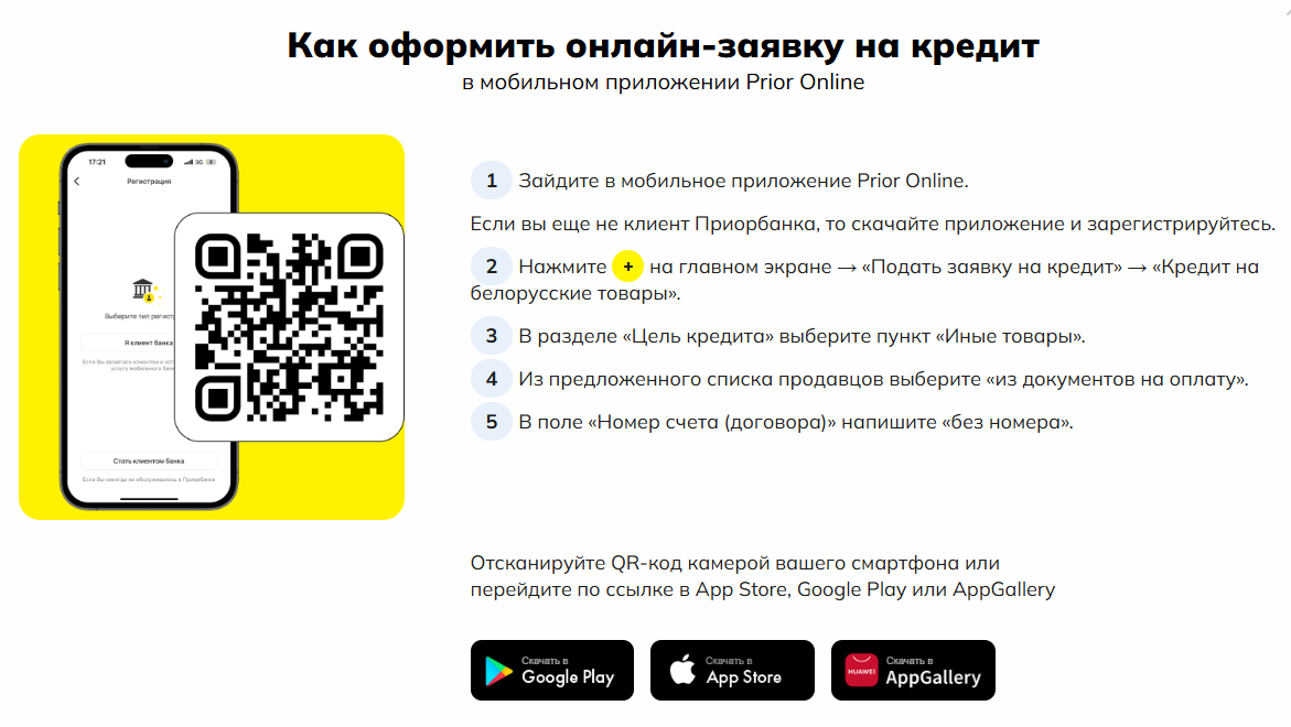 Кредит от Приорбанка до 7 лет на любые белорусские товары