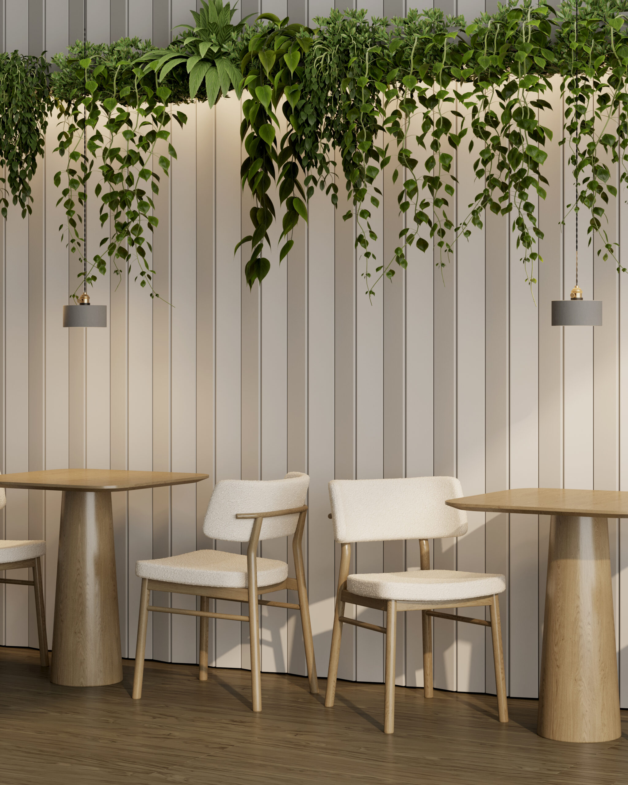 Рейки-лесенка — настоящий трансформер. С их помощью можно спроектировать большие площади полностью однородными или же расставить акценты в интерьере; объединить разные зоны, плавно перетекающие одна в другую, или зрительно зонировать пространство. Благодаря модульной структуре рейки-лесенка подходят как для ровных, так и для радиусных стен. А также для декора потолка.
