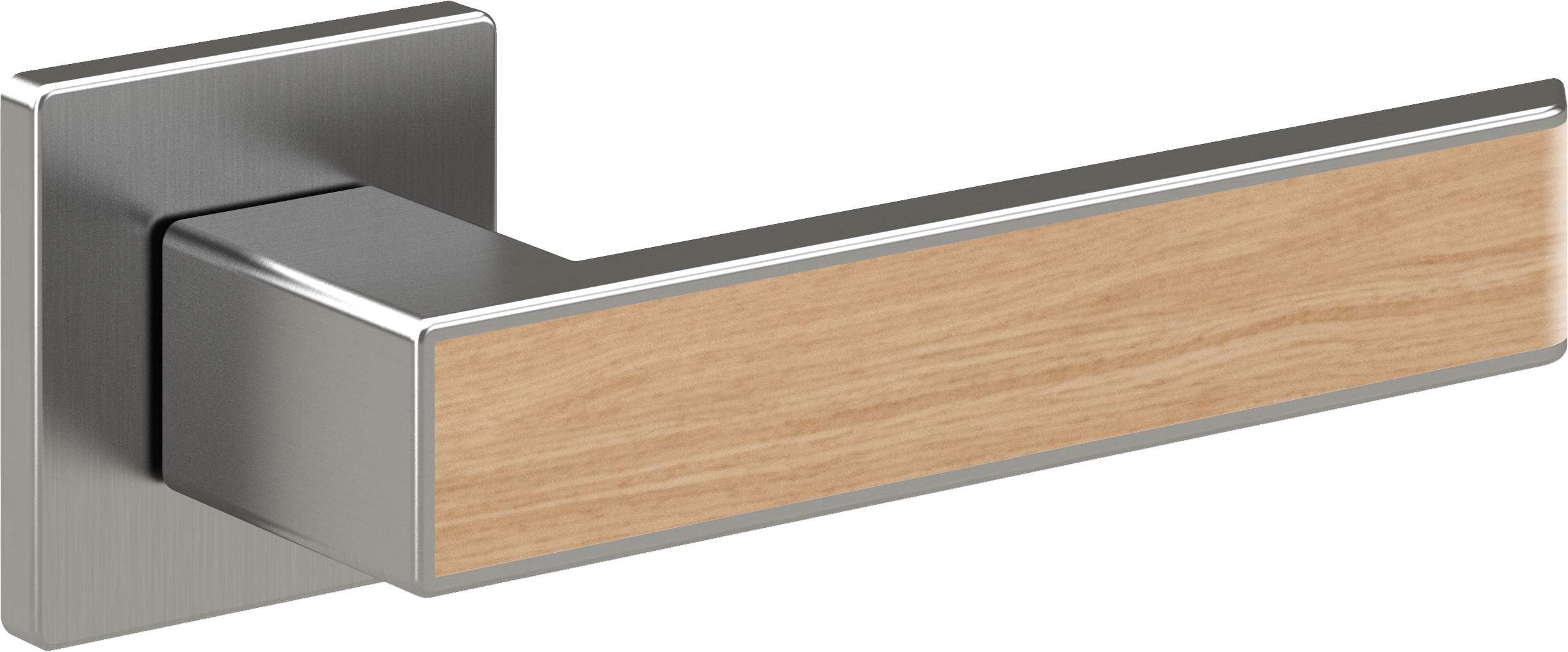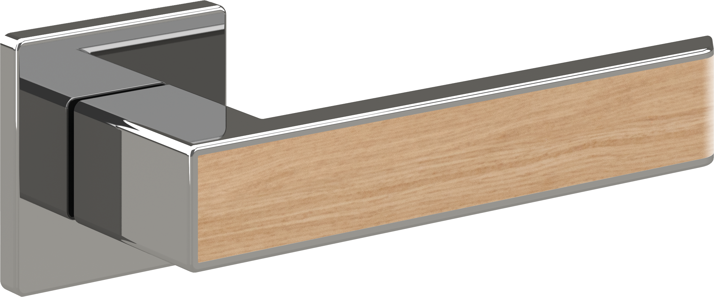 Отделка накладок и фиксатора совпадает с отделкой ручки, а дизайн их подобран таким образом, что вместе они образуют единый комплект фурнитуры, который будет органично смотреться с Вашей дверью.