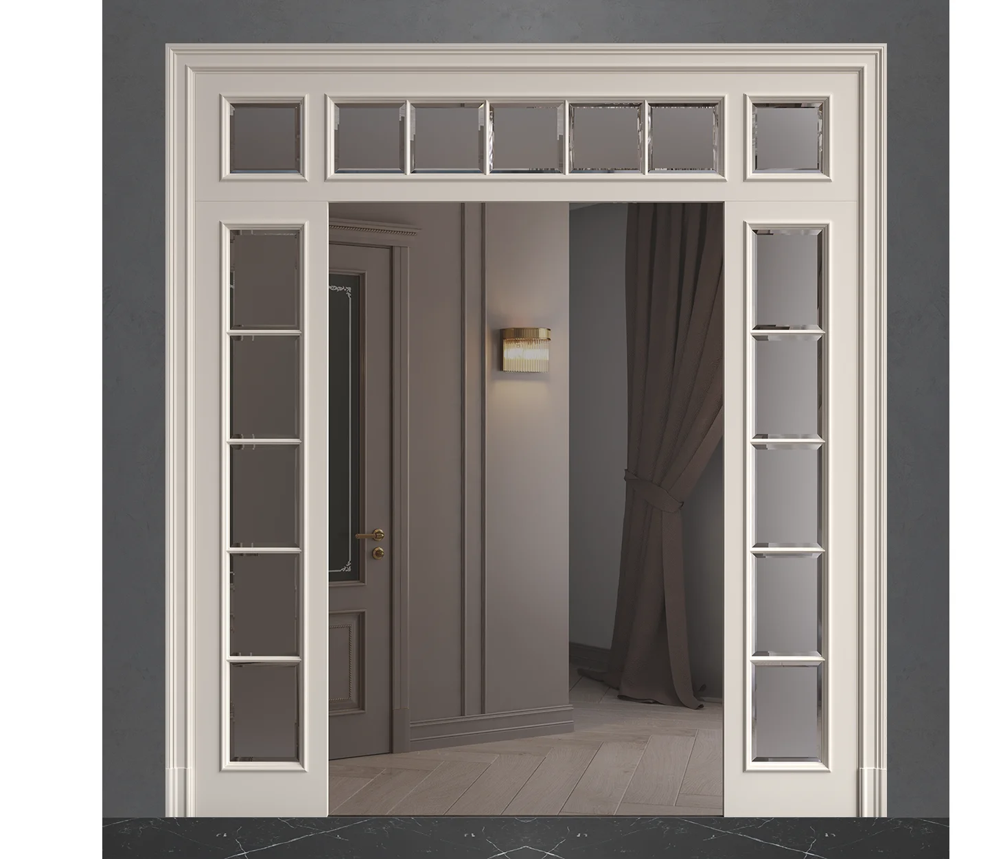 Портал визуально увеличивает высоту и ширину прохода, делая его парадным. Фацетное стекло выглядит значительно дороже и статуснее обычного, работая как самостоятельный элемент декора.