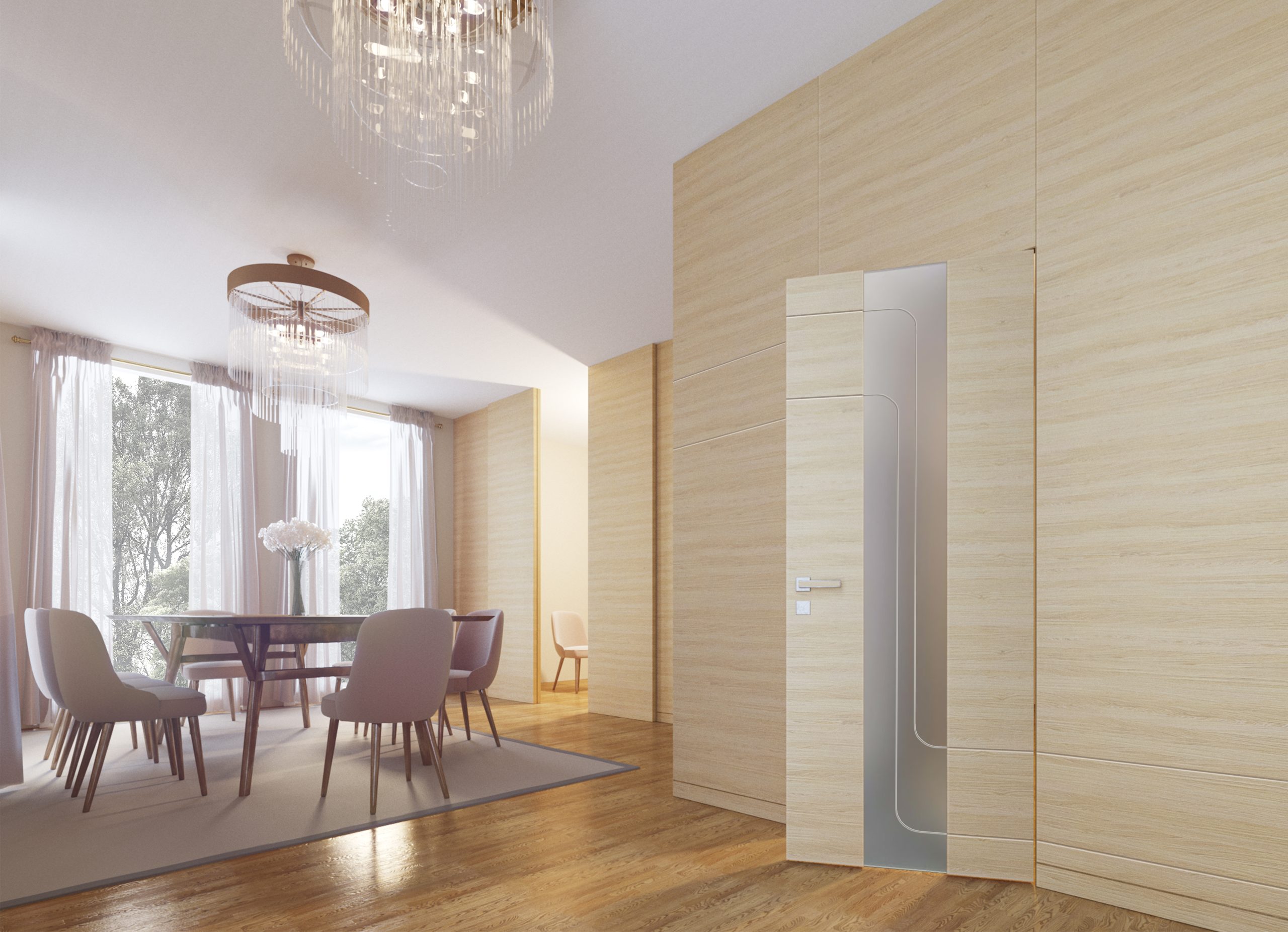 В состав стеновых панелей могут быть интегрированы дверные блоки.