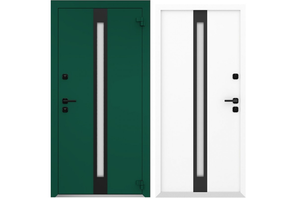 Полотно выполнено из двух листов металла толщиной 1,2 мм. Надежная двухконтурная конструкция с термоизоляционным контуром и наполнением из пенополистирола, гарантирует надежность, долговечность и лучшие показатели тепло- и шумоизоляции двери.