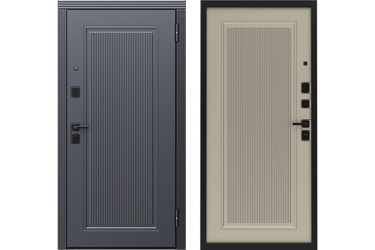 Дополнительную жесткость конструкции придает уникальное расположение ребер (2 вертикальных, 2 горизонтальных). Усиленные петли на подшипниках. Усиление зоны петель легированным металлом квадратного сечения. Усиление замковой части металлическим карманом Регулятор притвора (обеспечивает плотное прилегание дверного полотна к коробу)