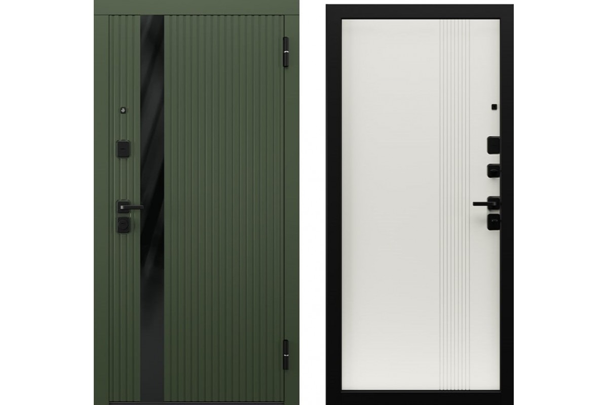 Дополнительную жесткость конструкции придает уникальное расположение ребер (2 вертикальных, 2 горизонтальных). Усиленные петли на подшипниках. Усиление зоны петель легированным металлом квадратного сечения. Усиление замковой части металлическим карманом Регулятор притвора (обеспечивает плотное прилегание дверного полотна к коробу)