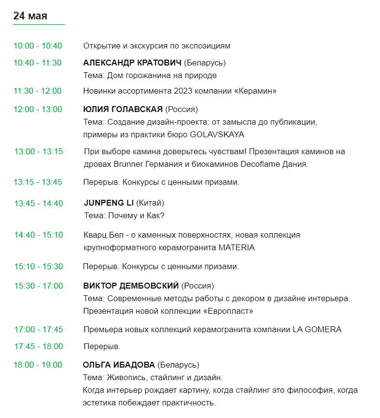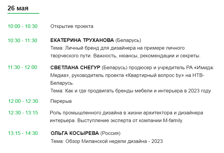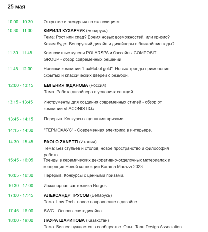 Дизайнерам, архитекторам и декораторам будет интересна насыщенная программа со спикерами, среди которых профессионалы и эксперты в области дизайна и архитектуры Беларуси, России, Италии, Китая и Казахстана!